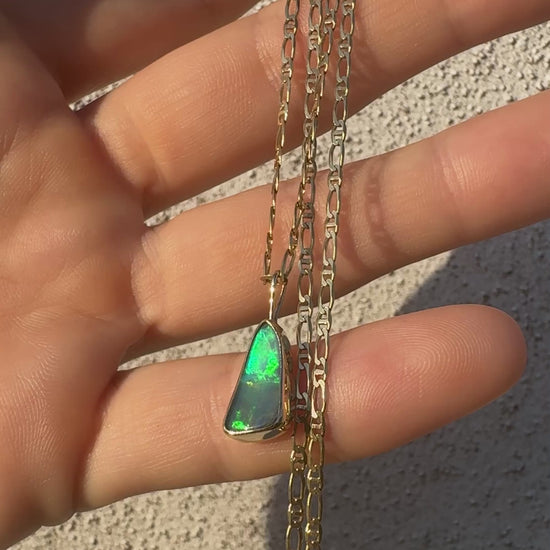 Australian boulder opal mined in Quilpie, Queensland. Bezel set in solid 9ct gold.